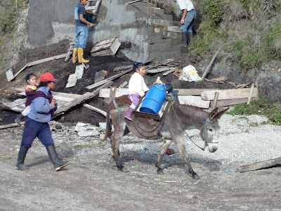 From the higher planes, women were coming down with donkeys and lamas carrying milk into the town and to the cheese factory. From the lower planes instead 2 coaches brought teenagers of the technical institute of the town of Guaranda in a study tour. The youth were buzzing around the main square, playing volleyball and hanging around in bands, before learning the biochemistry of cheese production at the local cheese factory. One thing that you could not fail to notice is that everybody you run across — whether a woman carrying a baby and pulling a Lama, or a man walking with tanks of gasoline, or a teenager passing by with a baseball cap, were greeting you with a smile and a “buenos dias”.