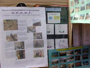One such a social movement is the one I saw at the III Feira del Agua in Cochabama. And indeed, if anybody had any doubt about the existence and relevance of commons to people lives and livelihoods, well a Fair like this should help dispel any such doubt. Spread along the four sides of a large football pitch and beyond, dozens of community water associations and cooperatives like the one of Flores Rancho that I visited the other day (see previous post) are making their own showcase, with the help of hand-made posters and polystyrene models, to mark their presence and to exchange information, knowledge and technology.